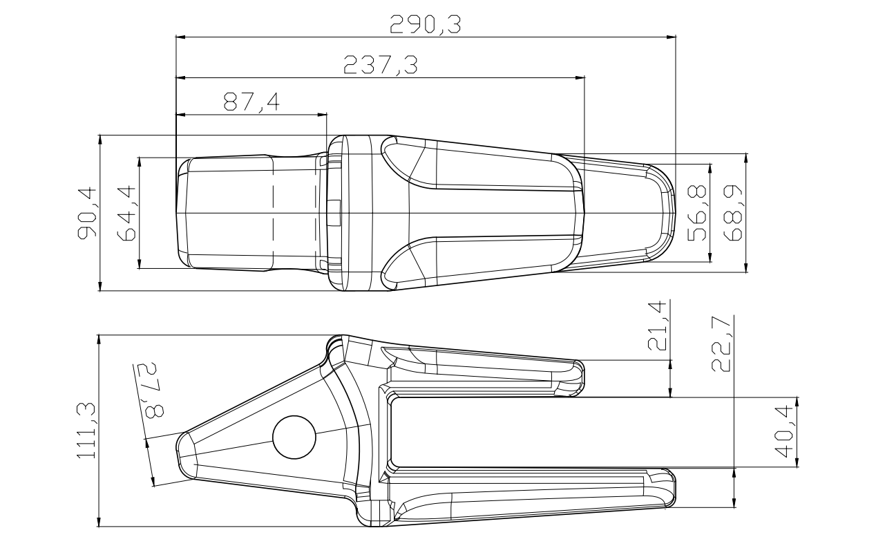 Profil zuba Komatsu zupci kašike posebno uključuje sljedeće vrste: Oštra stožasta caklina: Ovaj oblik zuba ima pr...